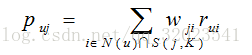在得到物品之间相似度后,ItemCF 算法通过下列公式计算用户 u 对一个物品 j 的兴趣: