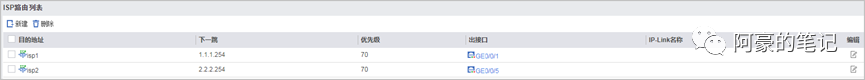 配置ISP选路功能。制作isp1.csv和isp2.csv两个ISP地址文件,并上传到FW上。