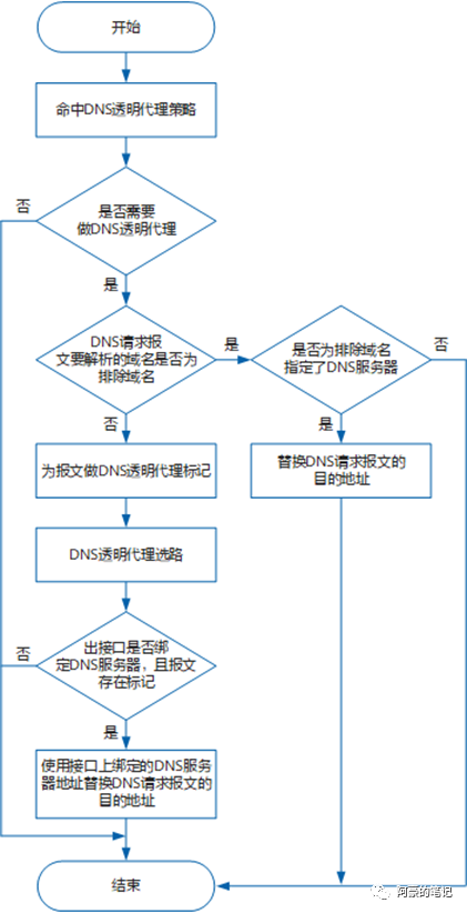 如果不是排除域名,FW会为报文做一个DNS透明代理标记,此标记用于后续流程的判断。