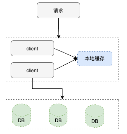 在请求打到服务器上面时,由服务器自身对请求key进行识别处理,将其放置到一个如哈希表结构的数据模型中,访问一次进行计数一次,当请求没有达到阈值时,请求会被转发到数据库上,达到阈值时进行访问,会将数据放置于本地jvm内存中,直接走本地缓存。