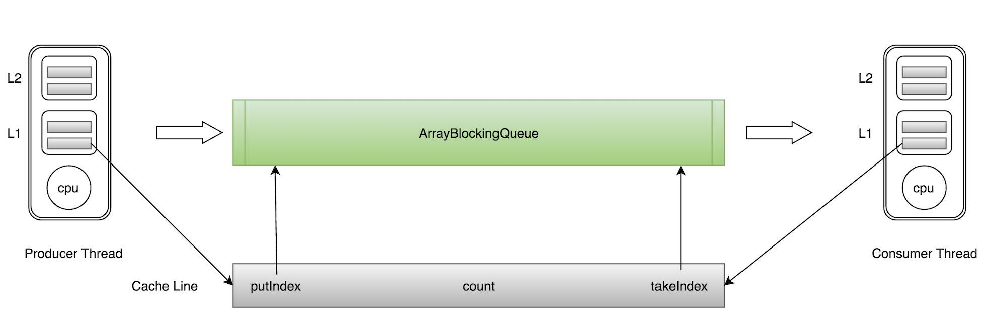 ArrayBlockingQueue在实际使用过程中,会因为加锁和伪共享等出现严重的性能问题,我们下面来分析一下。