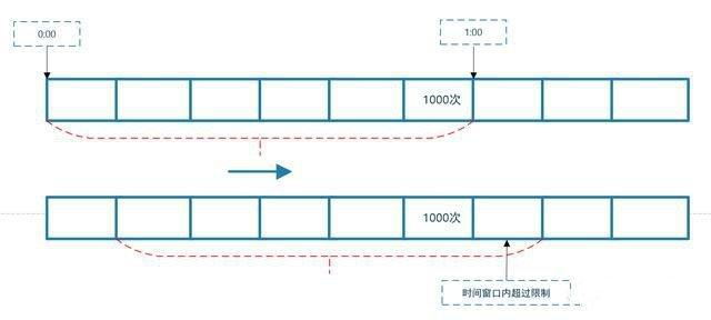 计数器法(固定窗口):原理就是限制每秒处理请求数不超过阈值。比如一个接口一分钟可以处理1000次请求,那么可以设置一个计数器,当有一次请求过来,计数器就加1,如果一分钟以内计数器超过了1000,那么后面再过来的请求就不再处理;但是这个方法的缺点也很明显,因为请求的访问不一定是很平稳的,如果0:59过来了1000个请求,1:01已经是下一个窗口,又过来了1000个请求,但实际上三秒内来了2000个请求,已经超过我们的限流上限了;