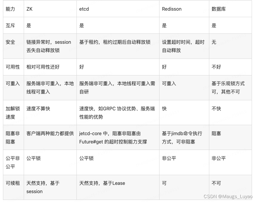 6.分布式锁横向对比