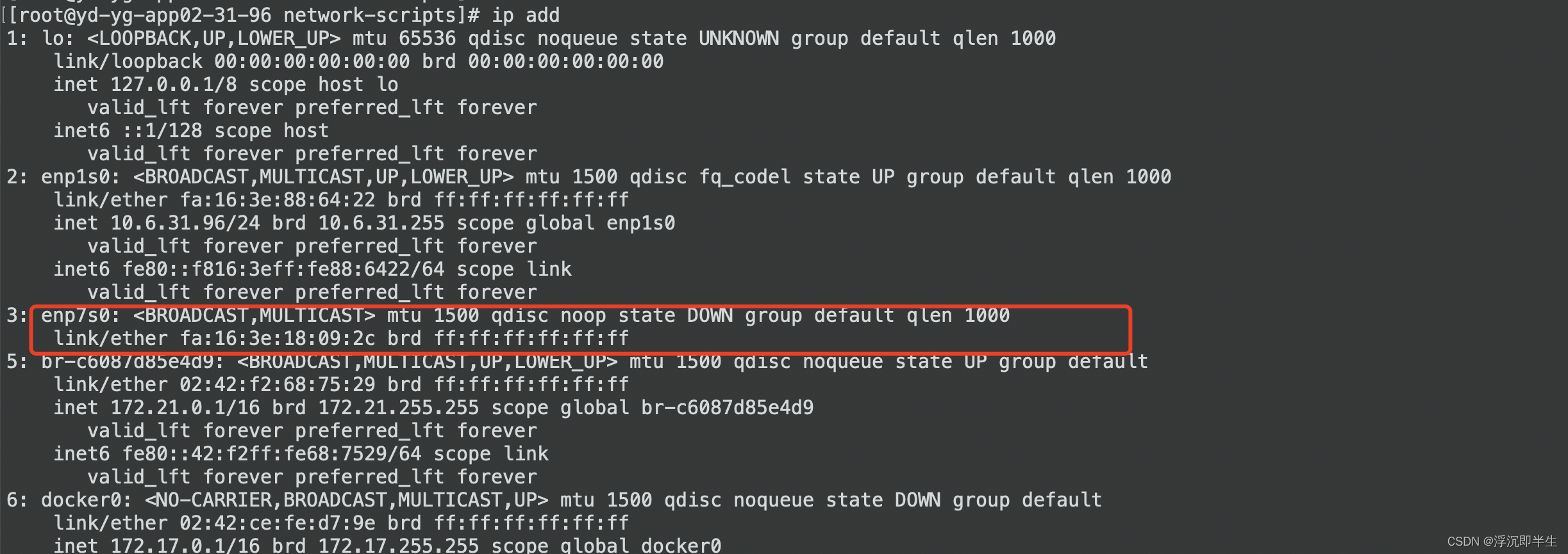 4,通过:ip addr查看还有一个enp7s0,莫名其妙改名了;