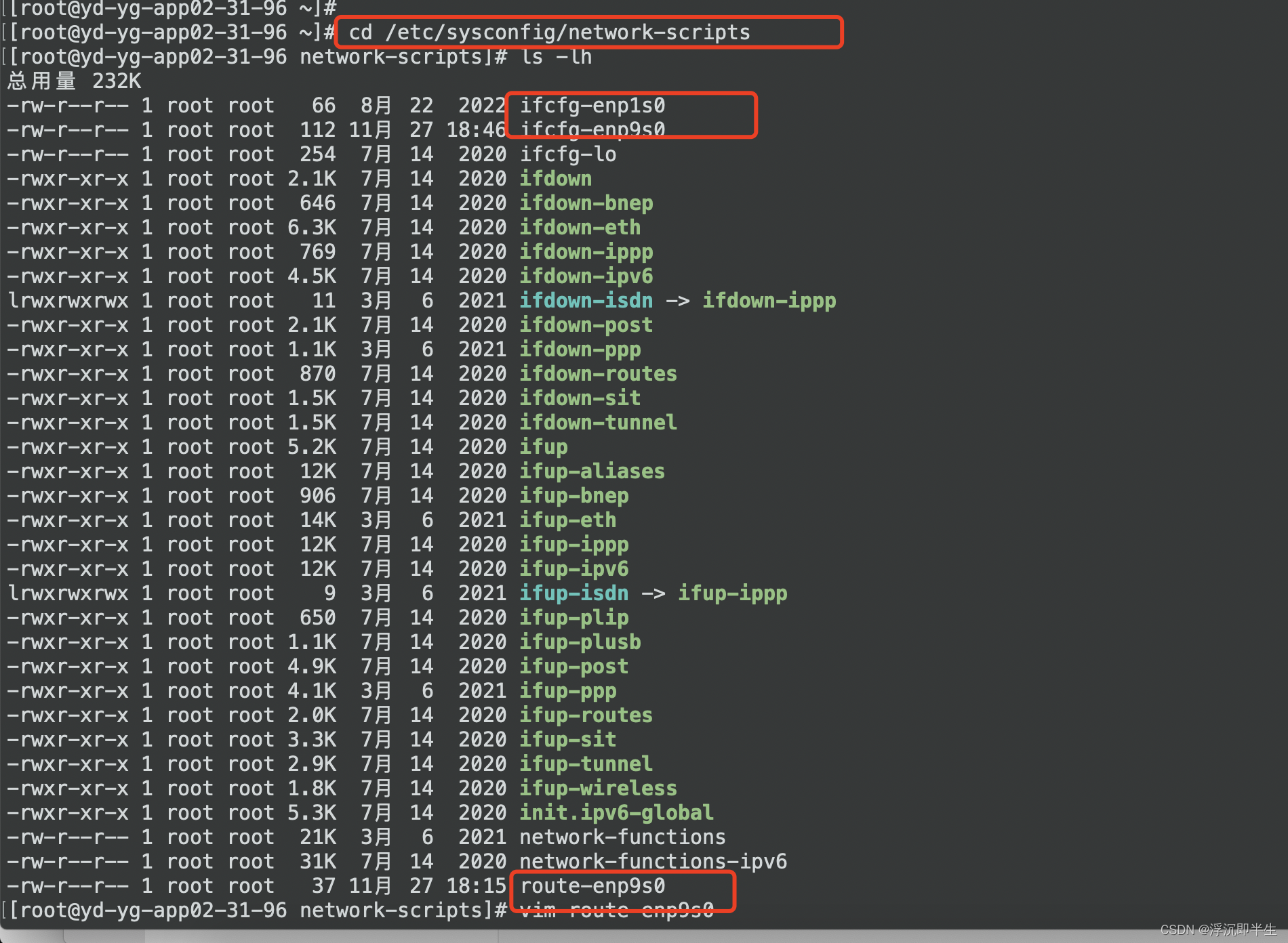 2,看到有:ifcfg-enp1s0和ifcfg-enp9s0,以及route-enp9s0;
