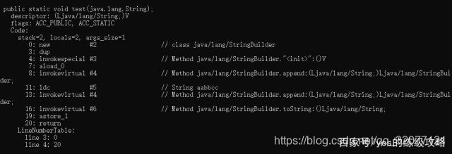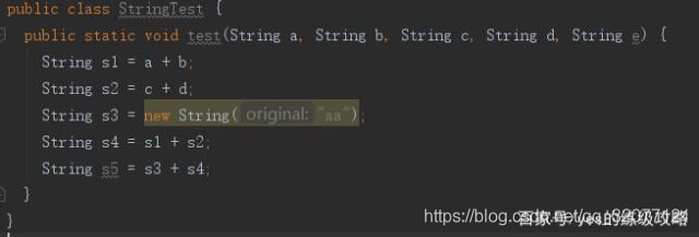 像这种没有变量的字符串,编译阶段就直接合成"aabbcc"了,然后看字符串常量池(下面会说到常量池)里有没有,有也直接引用,没有就在常量池中生成,返回引用。