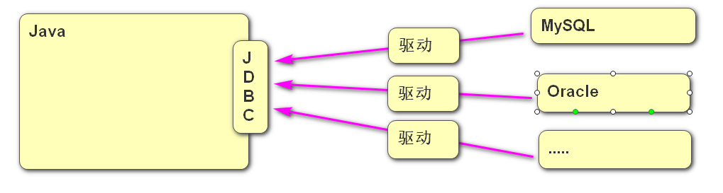 Java DataBase connectivity: Java数据库连接,Sun公司通过JDBC接口定义好了方法名,让各个数据库的厂商根据此方法名写各自的实现类(驱动)