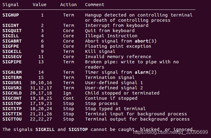 SIGSTOP和SIGKILL不允许被捕捉,忽略或者阻塞!