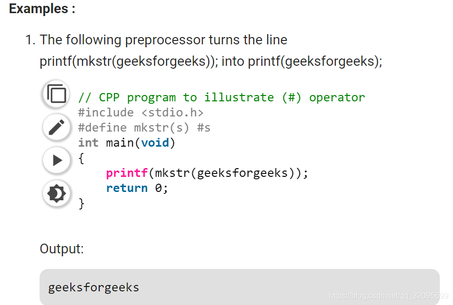 The # operator, which is generally called the stringize operator, turns the argument it precedes into a quoted string.