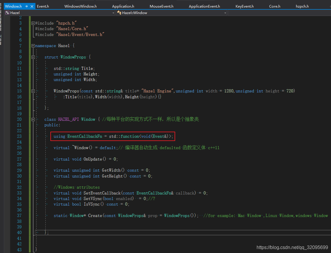 一个Application对应一个Window,我们用一个unique_ptr指向m_Window