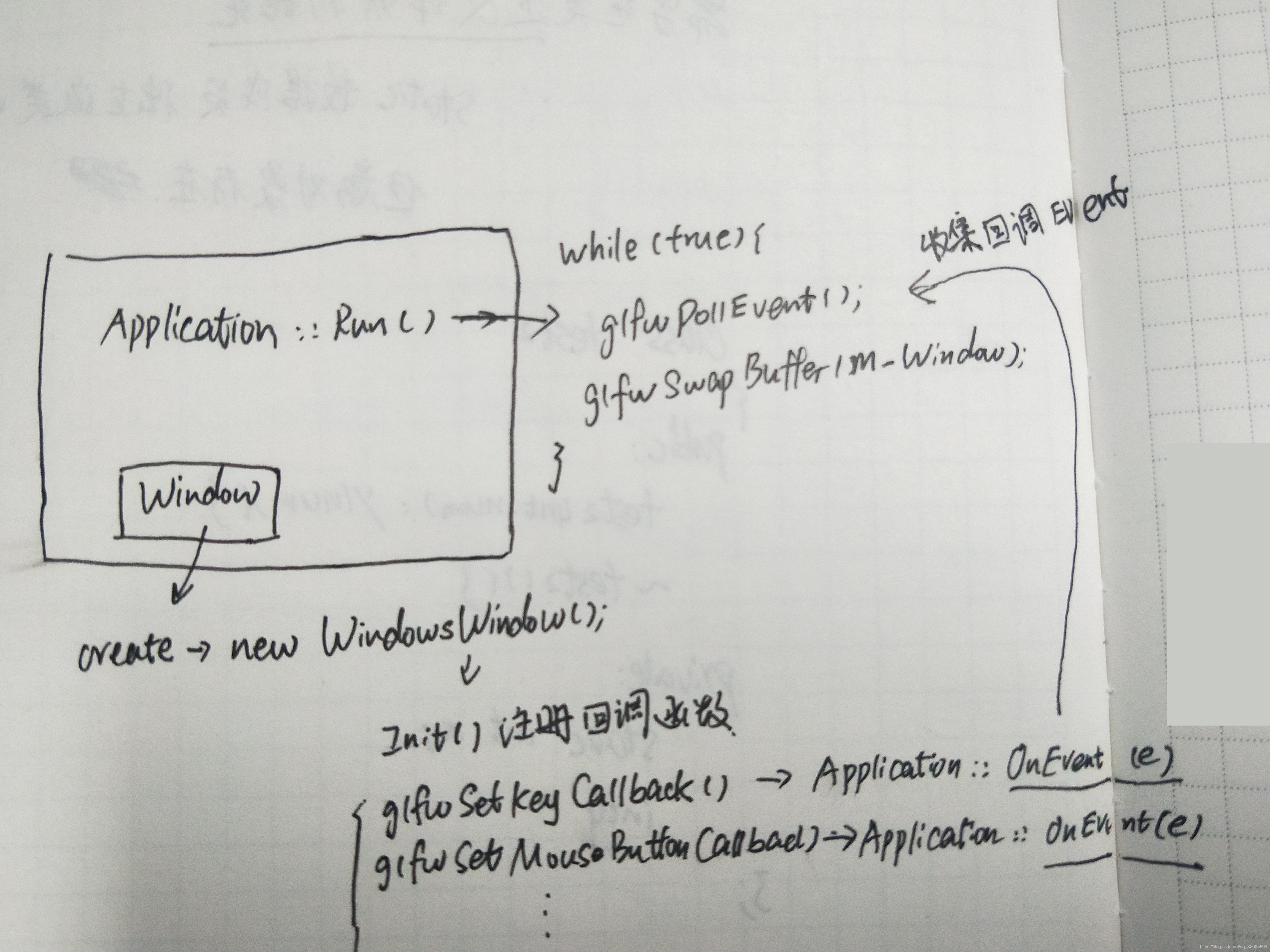 在Application::OnEvent ()中调用 EventDispatcher.Dispatch()把event分配到不同的event处理函数