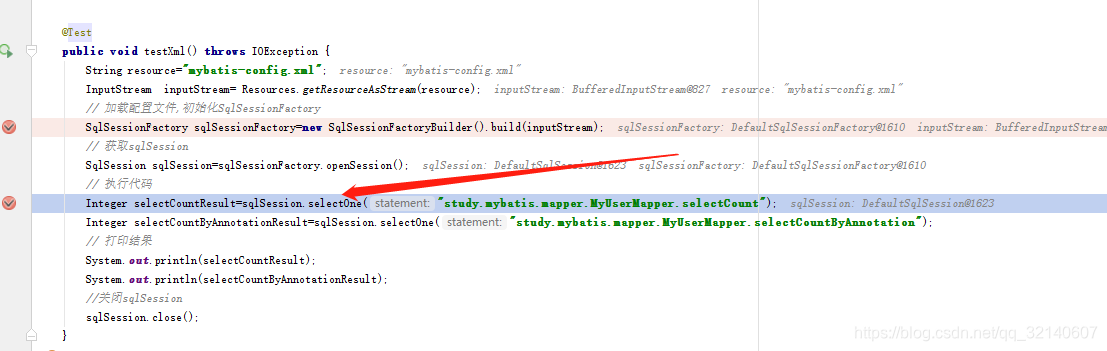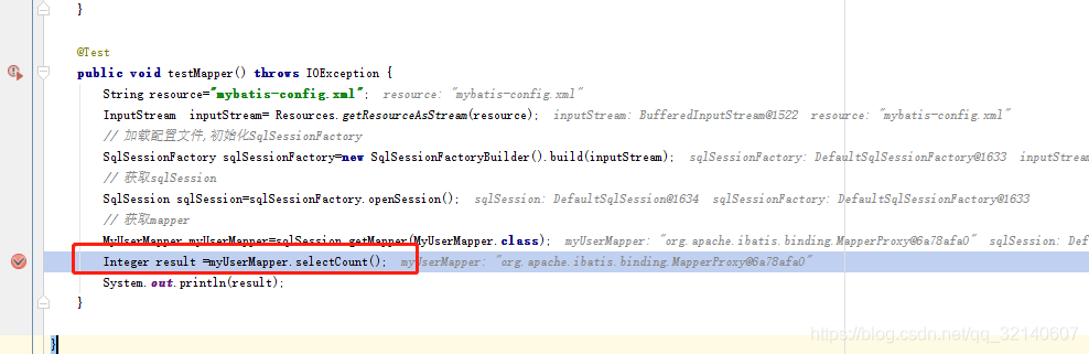 Integer selectCountResult=sqlSession.selectOne("study.mybatis.mapper.MyUserMapper.selectCount");