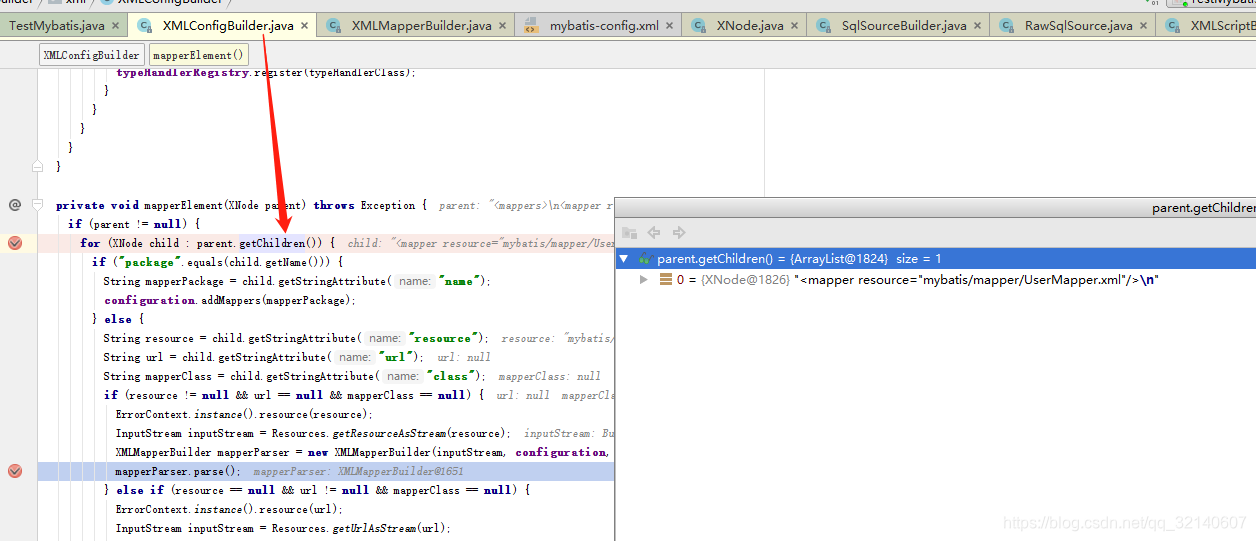 而在遍历mapper对象时还会进入每个mapper中遍历里面配置的所有SQL.