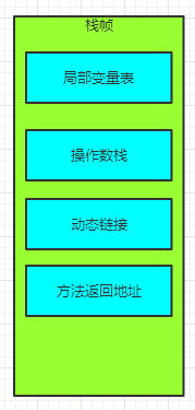 而每个栈帧底下又有局部变量表,操作数栈,动态链接,方法返回地址