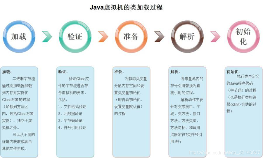 类加载主要包括加载,验证,准备,解析,初始化几步