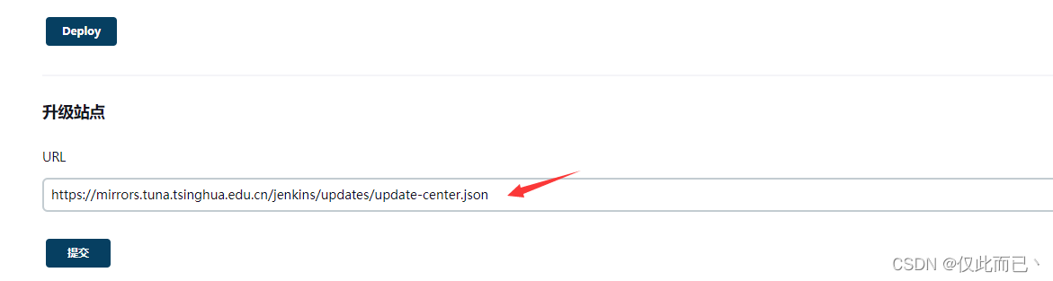 修改为清华大学的URL:https://mirrors.tuna.tsinghua.edu.cn/jenkins/updates/update-center.json