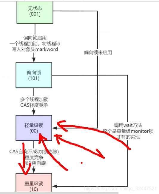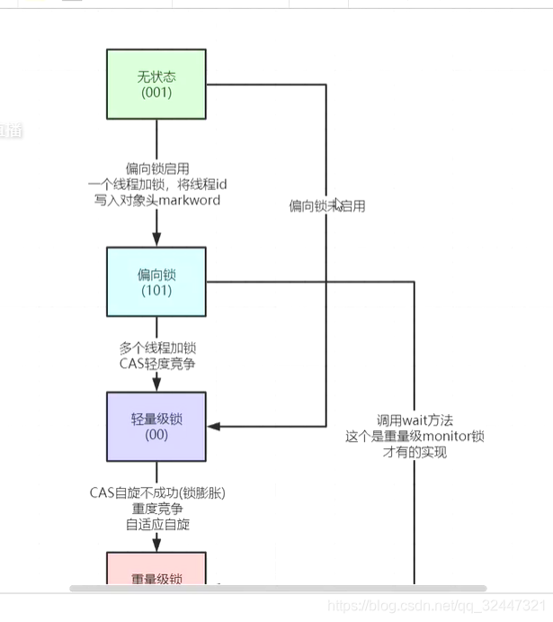 当被synchinzed修饰的,这种锁初始状态是“无状态的”,在多线程并发执行情况下偏向锁会升级轻量级锁(10线程左右),当并发的thread持续增大时 导致锁膨胀从而升级重量级锁