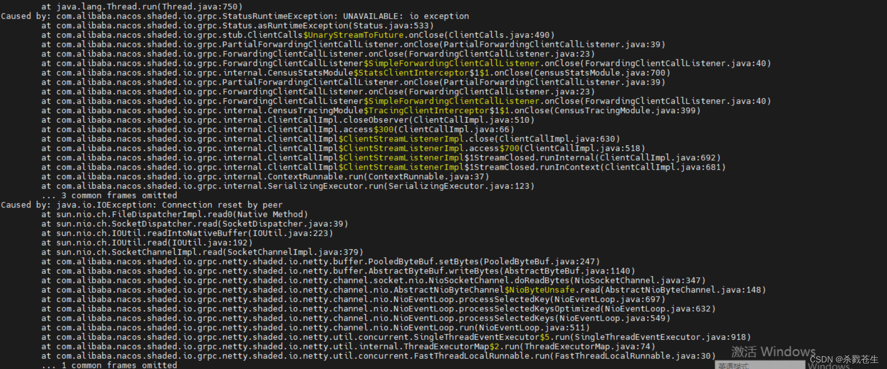 环境都是docker安装启动的,中间件加微服务共有20个服务,但是启动到第15个服务后,出现了服务上线的问题,nacos注册也出现上线。具体表现:启动服务后,能注册到nacos,但是接着就会随机停掉一个服务。且项目启动后,会报nacos错: