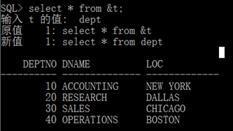 SQL> select * from &t;
