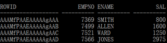 SQL> select rowid,empno,ename,sal from emp;