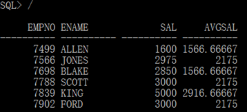 第一种写法 select e.empno,e.ename,e.sal,d.avgsal from emp e, (select deptno,avg(sal) avgsal from emp group by deptno) d where e.deptno=d.deptno and e.sal > d.avgsal |