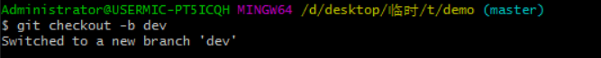 git checkout -b dev #该命令就会创建dev分支并且,切换到dev分支