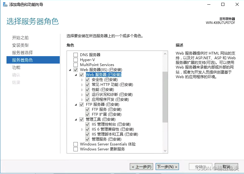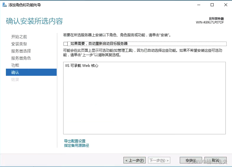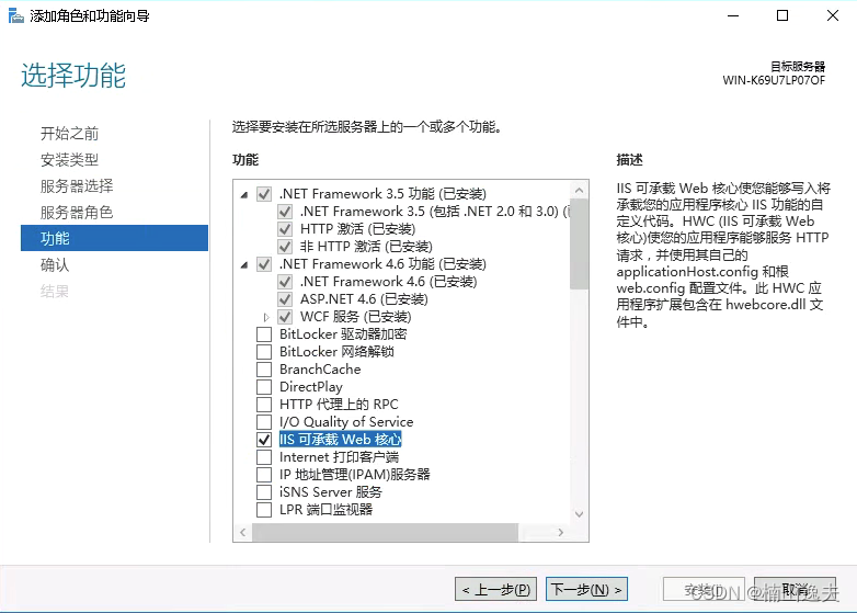 3.6、“IIS可承载的Web核心”可以不装,这里维持一直的习惯给安装了,防止出现其他错误,不好排查,