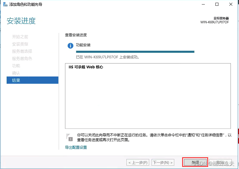 3.8、安装完成,点击“关闭”,即可以查看IIS站点。