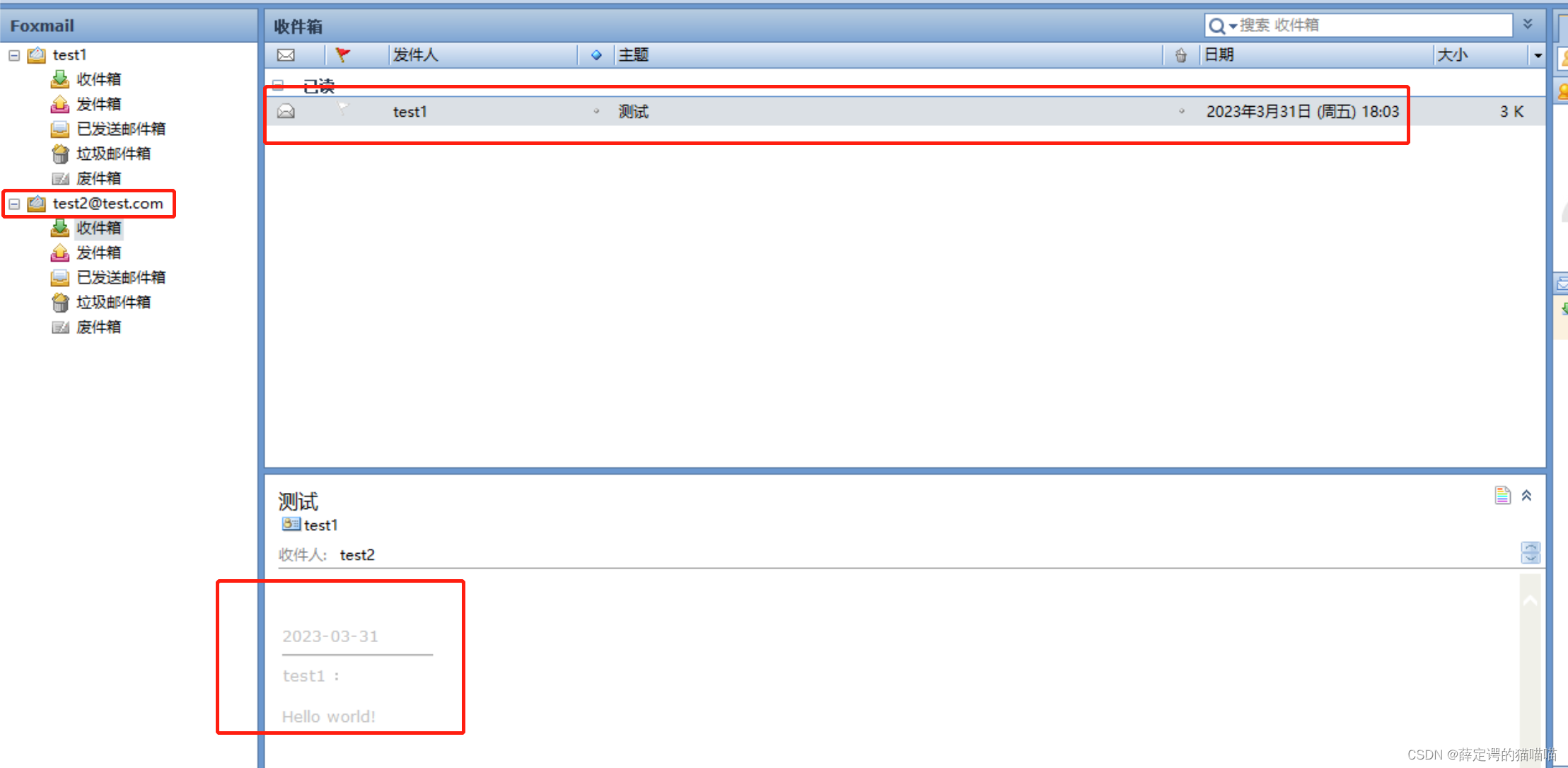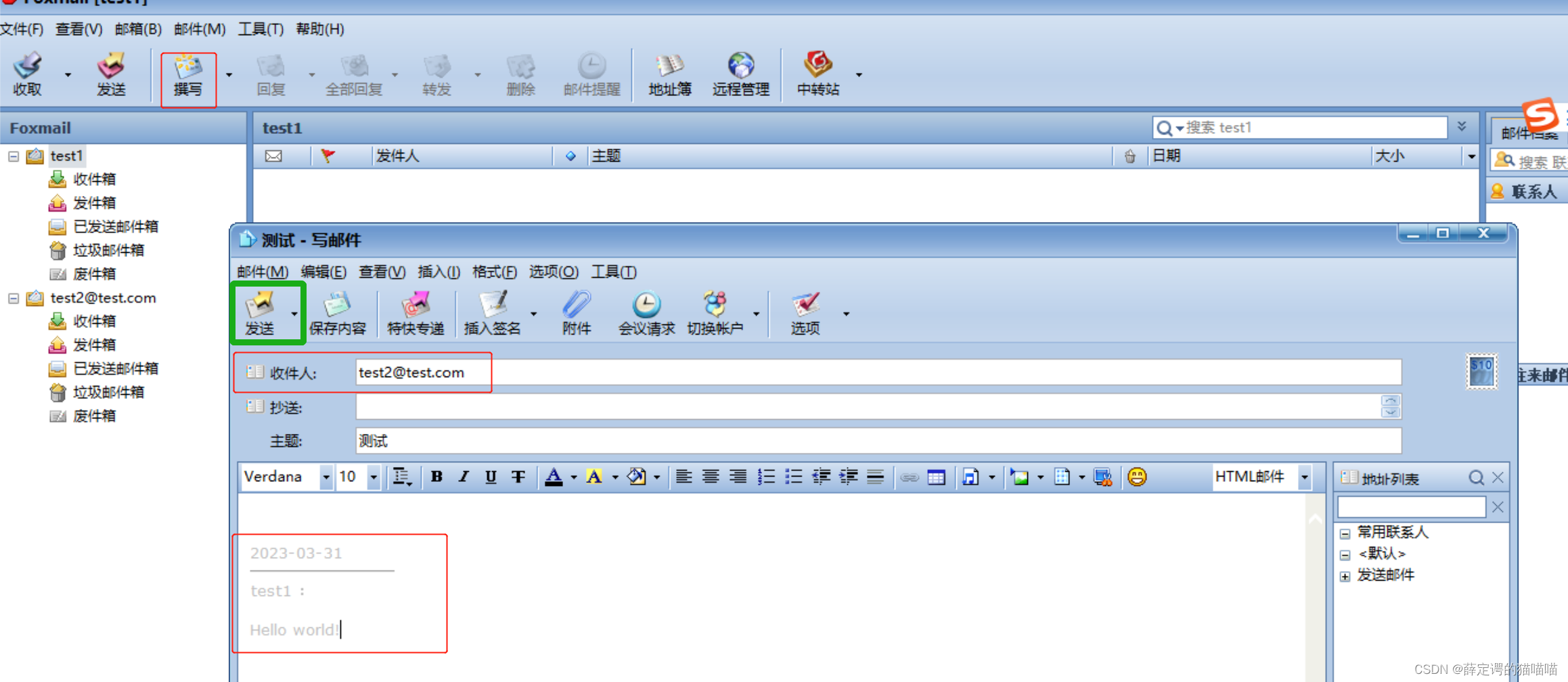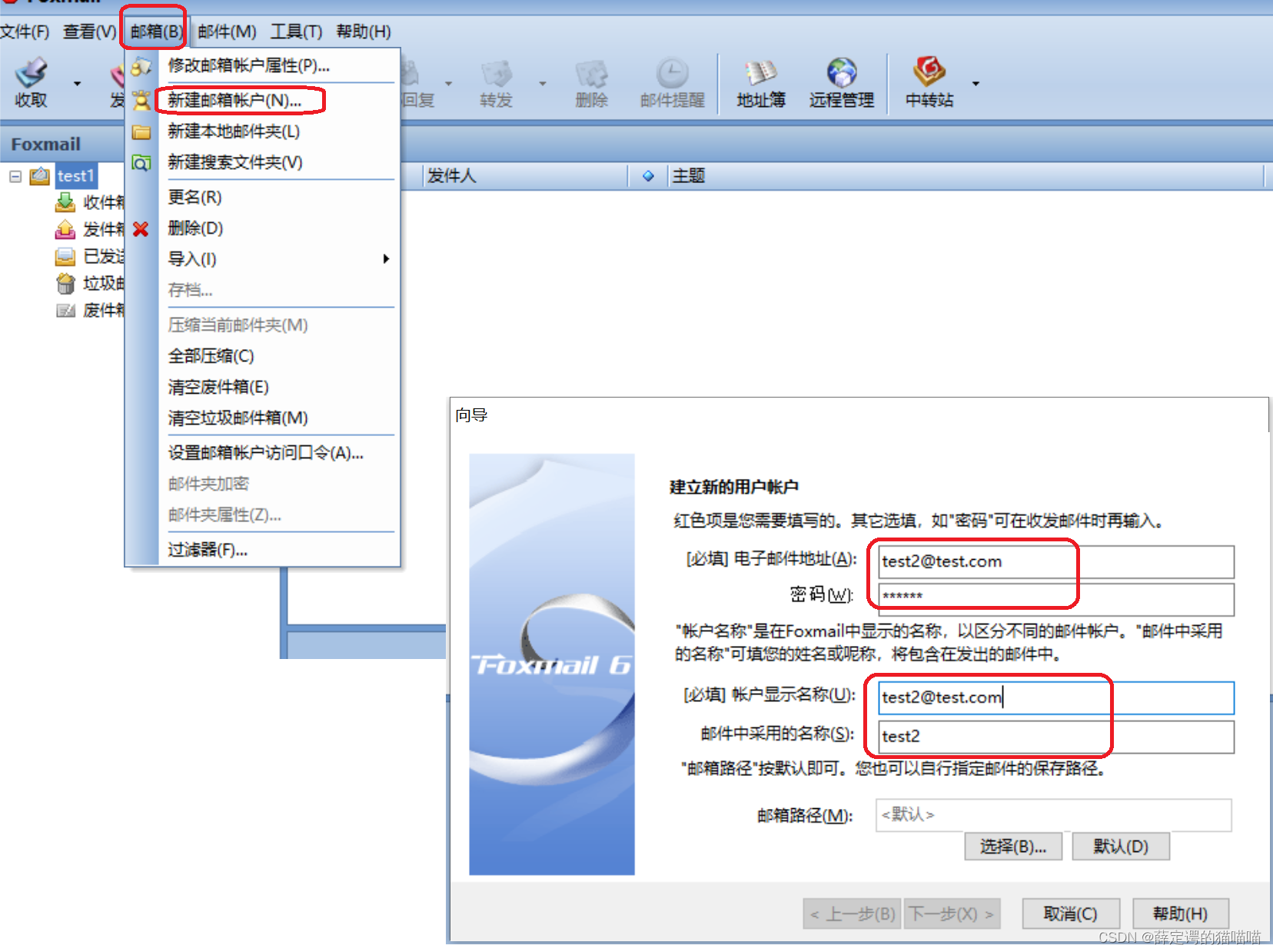 登录以后,新建邮箱账户test2,方法和test1一样。