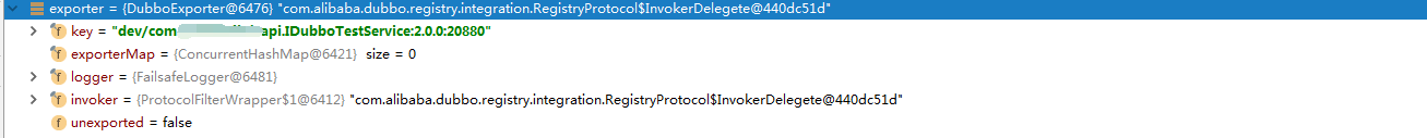 首先从url中获取需要暴露的key,本篇博客中的获取到的key是dev/com.api.IDubboTestService:2.0.0:20880。因为笔者项目中是存在version的概念的,所以多了一个dev,表示开发环境。然后去创建exporter。