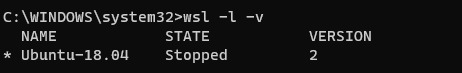 如:将 Ubuntu18.04 设置为WSL2的命令为 wsl --set-version Ubuntu-18.04 2