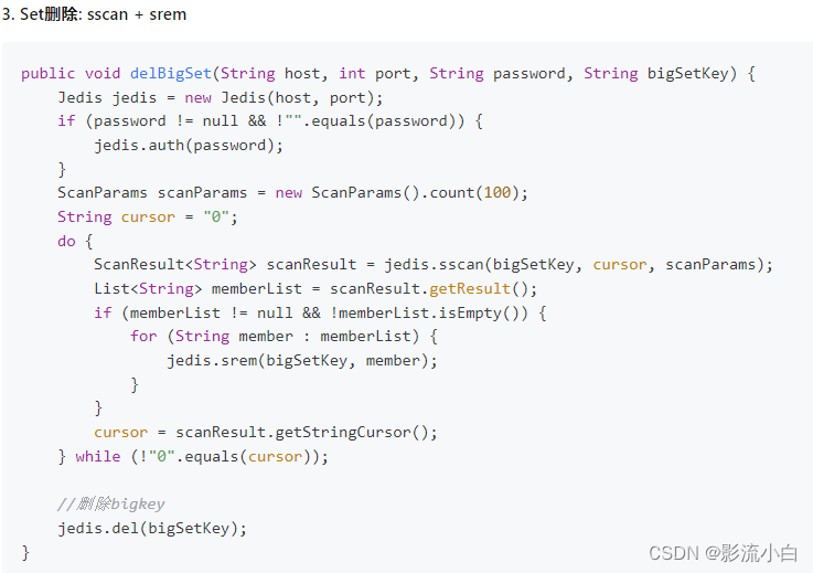 类似hash 使用sscan获取部分元素,再用srem删除部分元素,不断进行删除操作,直到删除完set里的所有元素,在删除set本身。