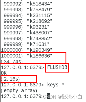 对于100w简单的string类型的value,使用keys *读取,大约花费15-30s,甚至更多,删除却只需要2秒多。如下图