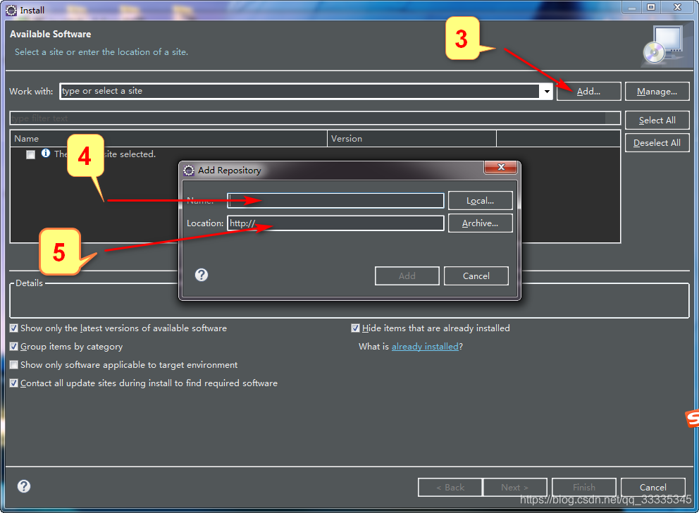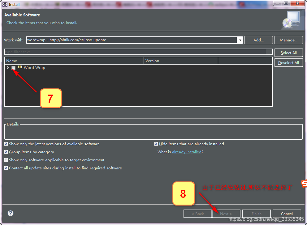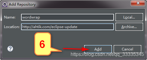 点解Add按钮,在“ Name ”中填入“ wordwrap ”,“Location ”中填入“http://ahtik.com/eclipse-update”