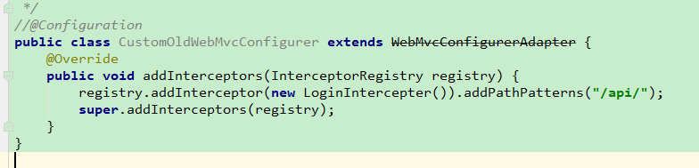 registry.addInterceptor(new LoginIntercepter()).addPathPatterns("/api/");