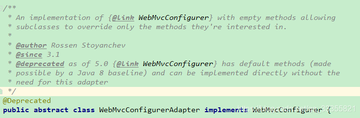 @deprecated从Spring5.0开始{@link WebMvcConfigurer}具有默认方法(由Java 8基线实现),可以直接实现而无需此适配器