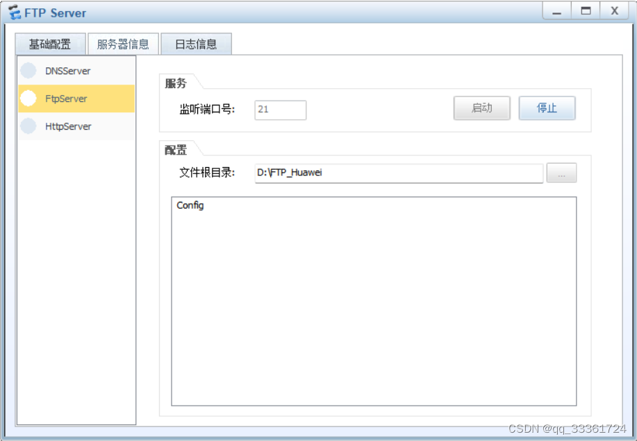 (2)在本地电脑创建一个文件夹FTP_Huawei文件夹,并创建一个子文件夹Config,并创建测试文件Test.txt,设置FTP文件夹为刚才的主文件夹目录