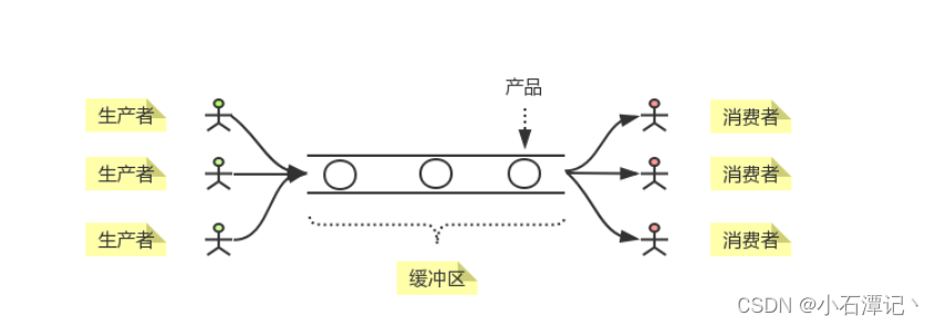生产者消费者模型需要抓住“三个主体,三个要点“,三个主体是指:生产者、消费者、缓冲区。生产者往缓冲区放数据,消费者从缓冲区取数据。