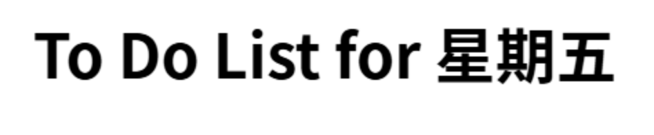 const today = new Date(); function formatDate(date) { return new Intl.DateTimeFormat( 'zh-CN', { weekday: 'long' } ).format(date); } export default function TodoList() { return ( <h1>To Do List for { formatDate(today) }</h1> ); } |