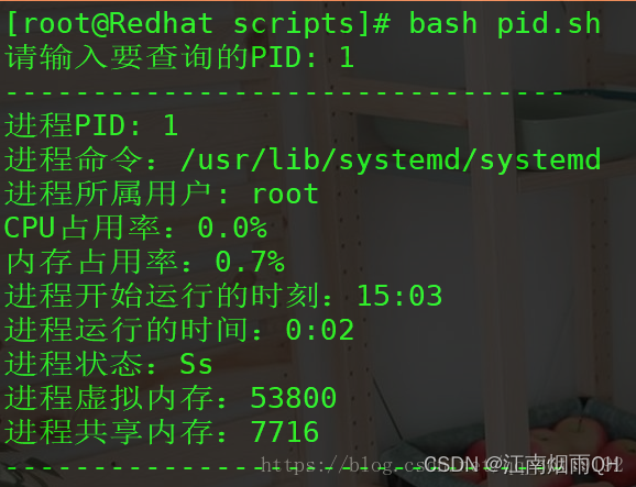 echo "进程共享内存:`ps -aux | grep $NAME | grep -v grep | awk 'NR=='$i'{print $0}'| awk '{print $6}'`"