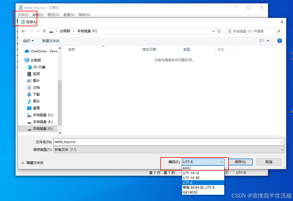 - 在打开的记事本中,点击文件-另存为-编码选择UTF-8,保存。就能将文件编码格式转化为UTF-8,中文不在乱码