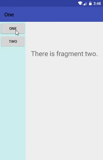这样就可以把Fragment动态添加到布局里面了。我们看一下效果: