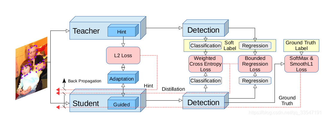 The code is heavily borrowed from : 1.Distillation for faster rcnn in classification,regression,feature level http://papers.nips.cc/paper/6676-learning-efficient-object-detection-models-with-knowledge-distillation.pdf 2.Distillation for faster rcnn in feature level +mask http://openaccess.thecvf.com/content_CVPR_2019/papers/Wang_Distilling_Object_Detectors_With_Fine-Grained_Feature_Imitation_CVPR_2019_paper.pdf