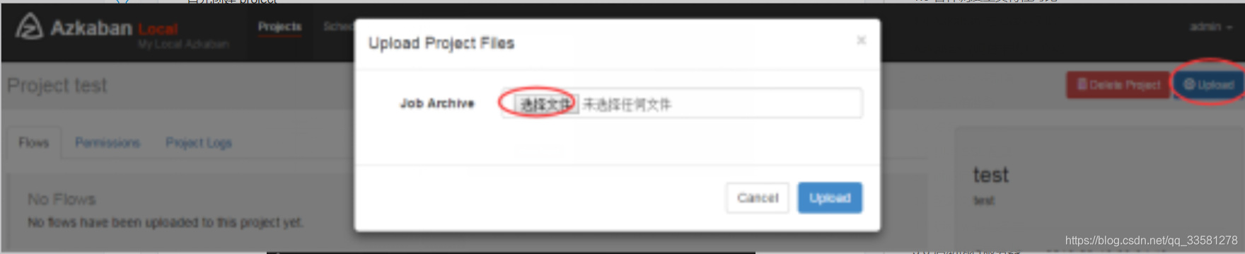 4)在 azkaban 的 web 管理界面创建工程并上传 zip 包