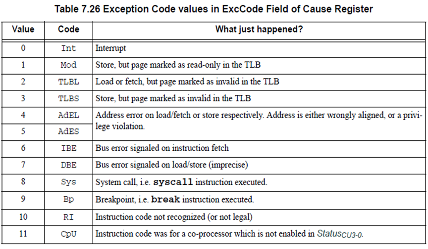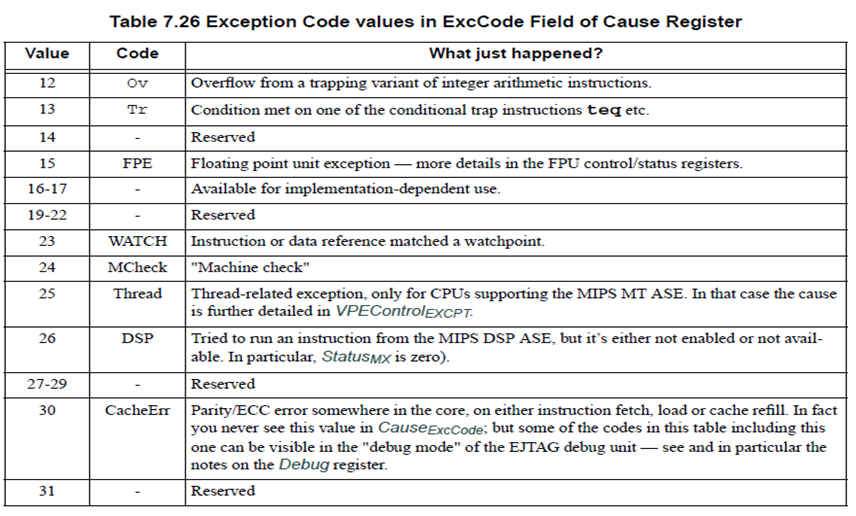 Miss Load/Write,如果试图访问没有在MMU的TLB中映射的内存地址,会触发这个异常。在支持虚拟内存的操作系统中,这会触发内存的页面倒换,系统的Exception Handler会将所需要的内存页从虚拟内存中调入物理内存,并更新相应的TLB表项。