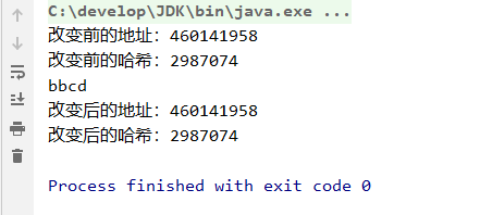 System.out.println("改变后的地址:" + System.identityHashCode(s));