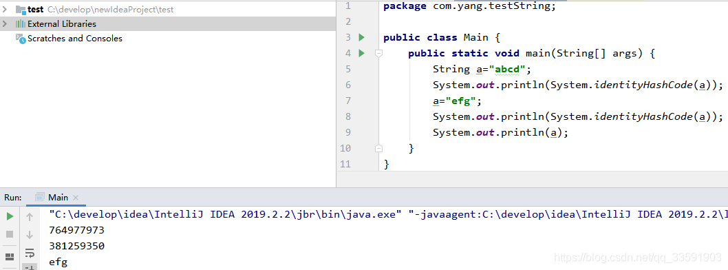 这段代码可以输出efg,a确实String类型的啊,那现在a被改变了,说明String是可变的啊。