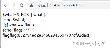代码提示用post接收what参数值,如果what="flag" 就会输出flag{***}