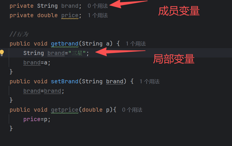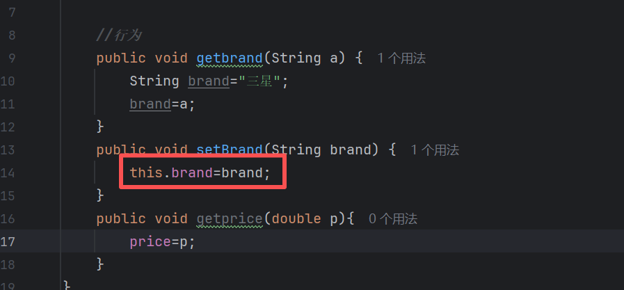 在开发过程中,类的成员属性和setBrand的形参都是brand,类似这样的调用就会失败,