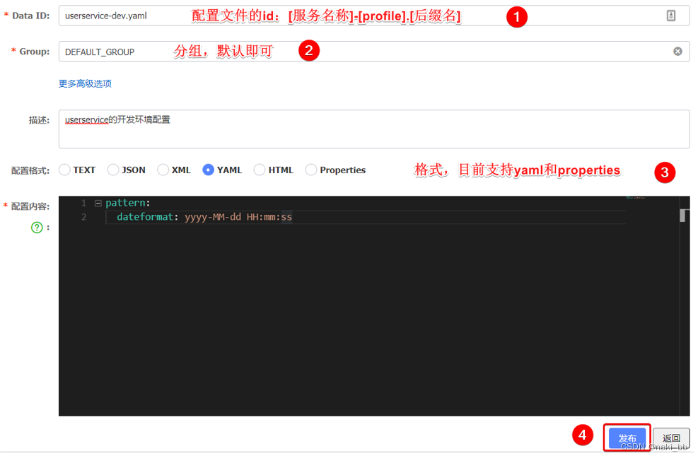 这里注意一定要注意选择的namespace,创建的配置文件也是隔离namespace。否则很容易就出现读取不到配置文件的情况。